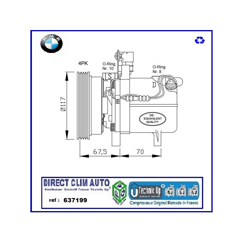COMPRESSEUR ECHANGE STANDARD MODEL ORIGINAL CONSTRUCTEUR EQUIPMENTIER POUR CIRCUIT DE CLIMATISATION VEHICULE