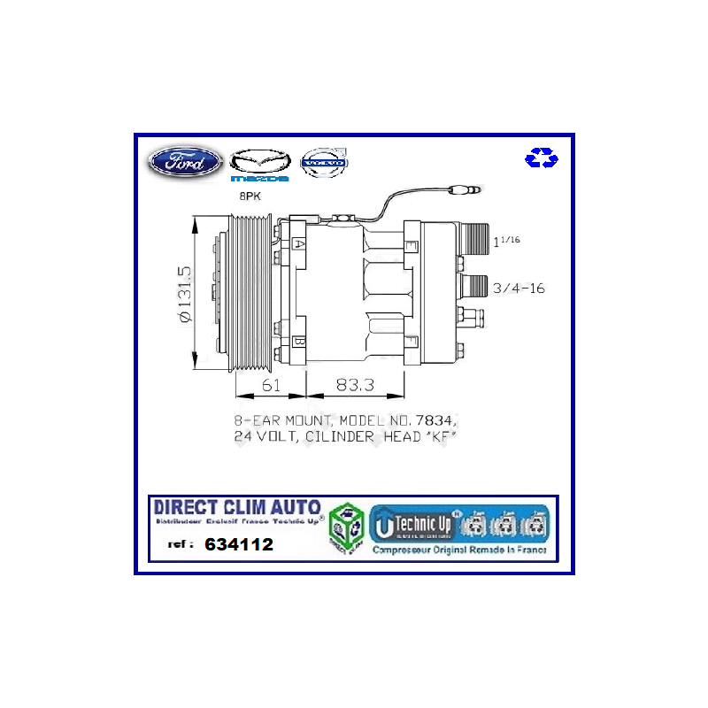COMPRESSEUR ECHANGE STANDARD MODEL ORIGINAL CONSTRUCTEUR EQUIPMENTIER POUR CIRCUIT DE CLIMATISATION VEHICULE