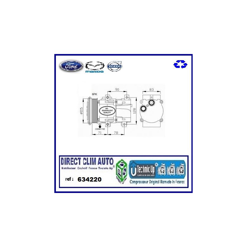 COMPRESSEUR ECHANGE STANDARD MODEL ORIGINAL CONSTRUCTEUR EQUIPMENTIER POUR CIRCUIT DE CLIMATISATION VEHICULE