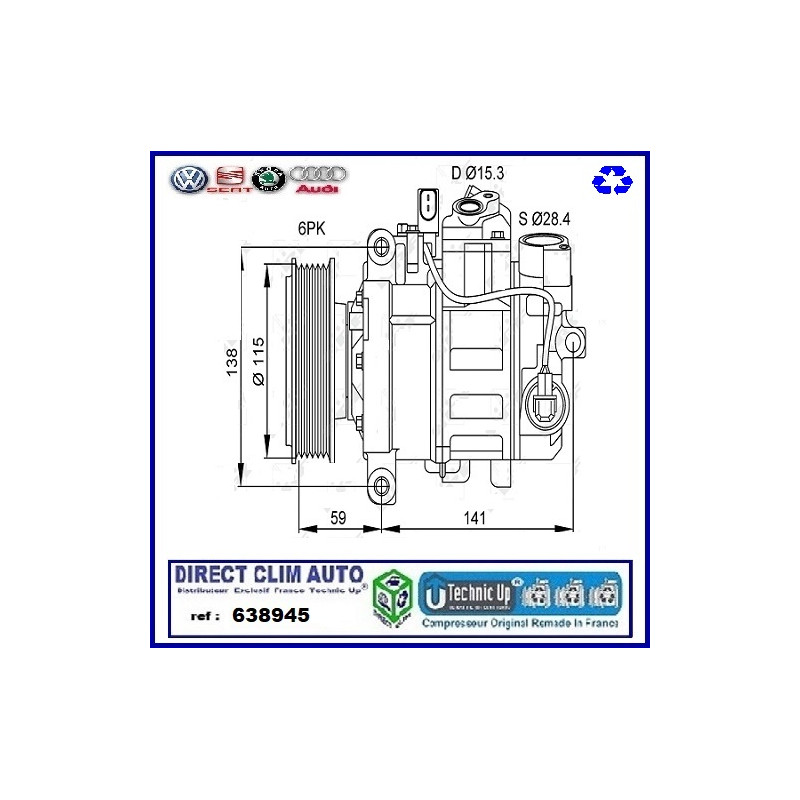 COMPRESSEUR ECHANGE STANDARD MODEL ORIGINAL CONSTRUCTEUR EQUIPMENTIER POUR CIRCUIT DE CLIMATISATION VEHICULE