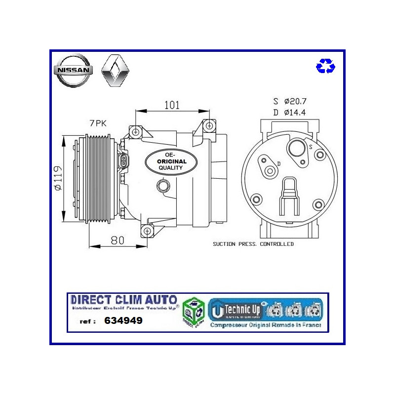 COMPRESSEUR ECHANGE STANDARD MODEL ORIGINAL CONSTRUCTEUR EQUIPMENTIER POUR CIRCUIT DE CLIMATISATION VEHICULE