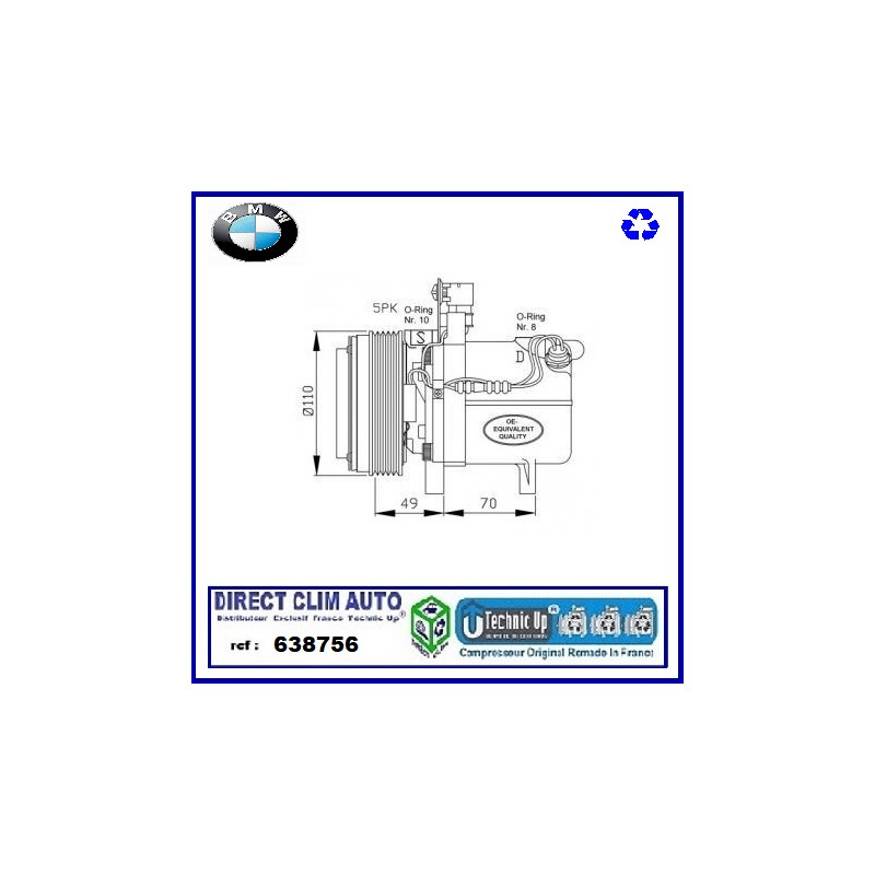 COMPRESSEUR ECHANGE STANDARD MODEL ORIGINAL CONSTRUCTEUR EQUIPMENTIER POUR CIRCUIT DE CLIMATISATION VEHICULE