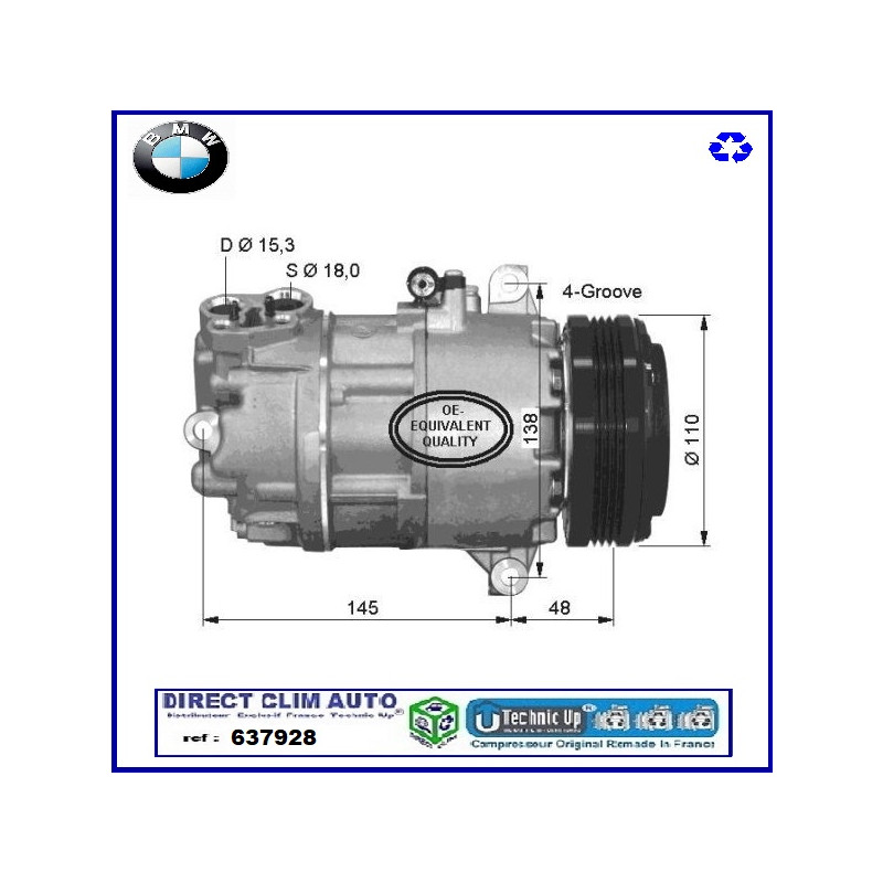 COMPRESSEUR ECHANGE STANDARD MODEL ORIGINAL CONSTRUCTEUR EQUIPMENTIER POUR CIRCUIT DE CLIMATISATION VEHICULE