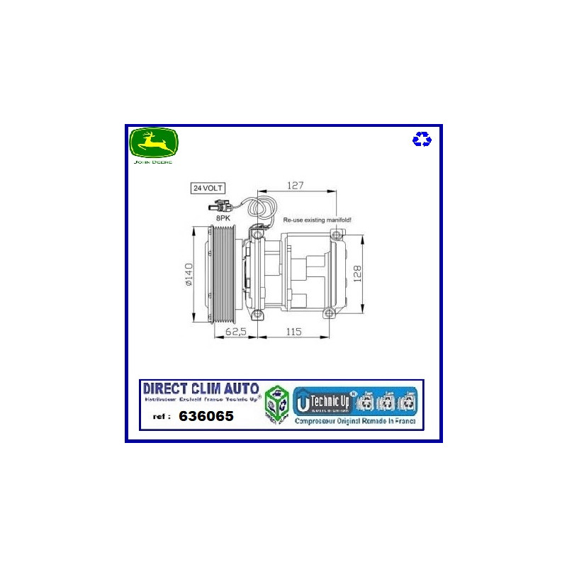 COMPRESSEUR ECHANGE STANDARD MODEL ORIGINAL CONSTRUCTEUR EQUIPMENTIER POUR CIRCUIT DE CLIMATISATION VEHICULE ENGIN - MATERIEL