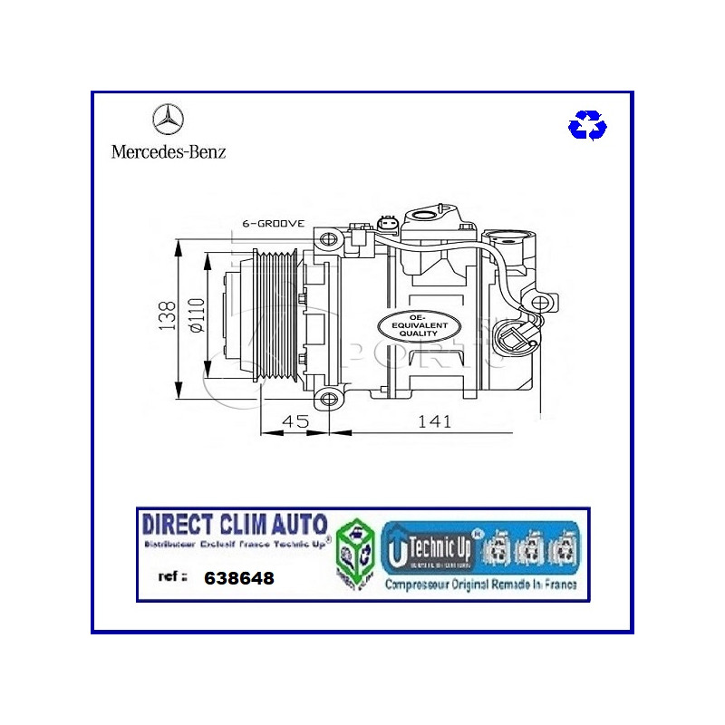 COMPRESSEUR ECHANGE STANDARD MODEL ORIGINAL CONSTRUCTEUR EQUIPMENTIER POUR CIRCUIT DE CLIMATISATION VEHICULE