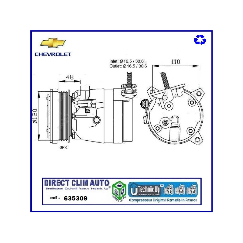 COMPRESSEUR ECHANGE STANDARD MODEL ORIGINAL CONSTRUCTEUR EQUIPMENTIER POUR CIRCUIT DE CLIMATISATION VEHICULE