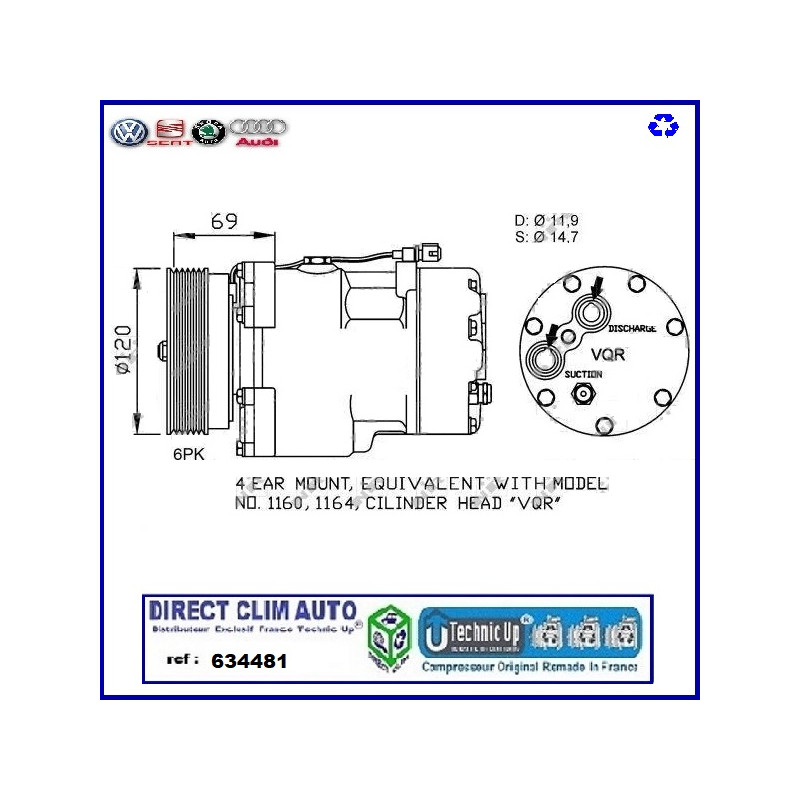 COMPRESSEUR ECHANGE STANDARD MODEL ORIGINAL CONSTRUCTEUR EQUIPMENTIER POUR CIRCUIT DE CLIMATISATION VEHICULE