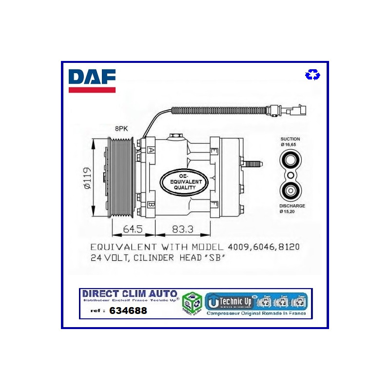 COMPRESSEUR ECHANGE STANDARD MODEL ORIGINAL CONSTRUCTEUR EQUIPMENTIER POUR CIRCUIT DE CLIMATISATION VEHICULE