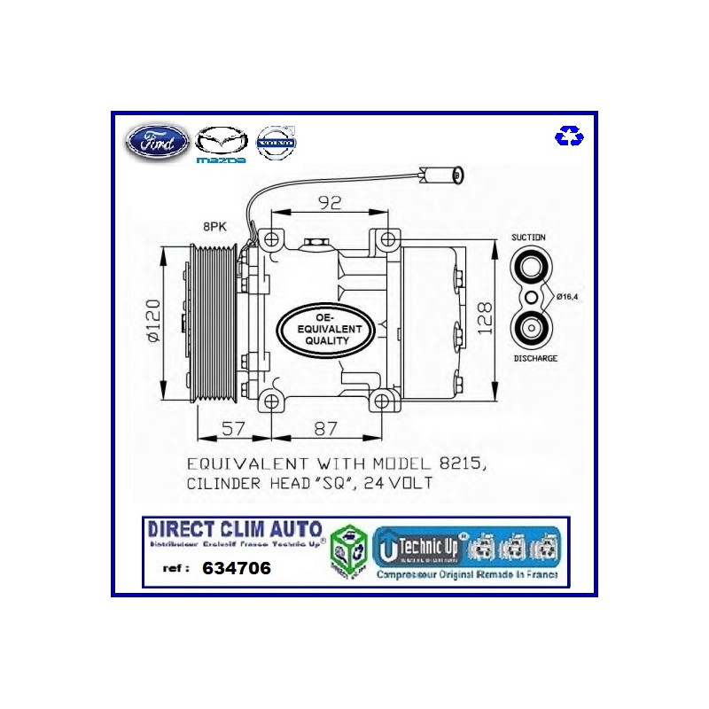 COMPRESSEUR ECHANGE STANDARD MODEL ORIGINAL CONSTRUCTEUR EQUIPMENTIER POUR CIRCUIT DE CLIMATISATION VEHICULE