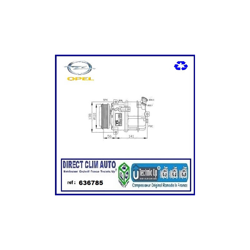 COMPRESSEUR ECHANGE STANDARD MODEL ORIGINAL CONSTRUCTEUR EQUIPMENTIER POUR CIRCUIT DE CLIMATISATION VEHICULE