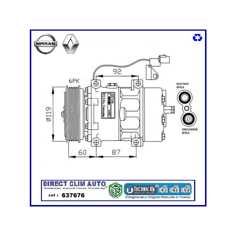 COMPRESSEUR ECHANGE STANDARD MODEL ORIGINAL CONSTRUCTEUR EQUIPMENTIER POUR CIRCUIT DE CLIMATISATION VEHICULE