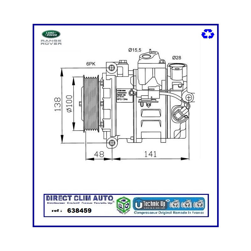 COMPRESSEUR ECHANGE STANDARD MODEL ORIGINAL CONSTRUCTEUR EQUIPMENTIER POUR CIRCUIT DE CLIMATISATION VEHICULE