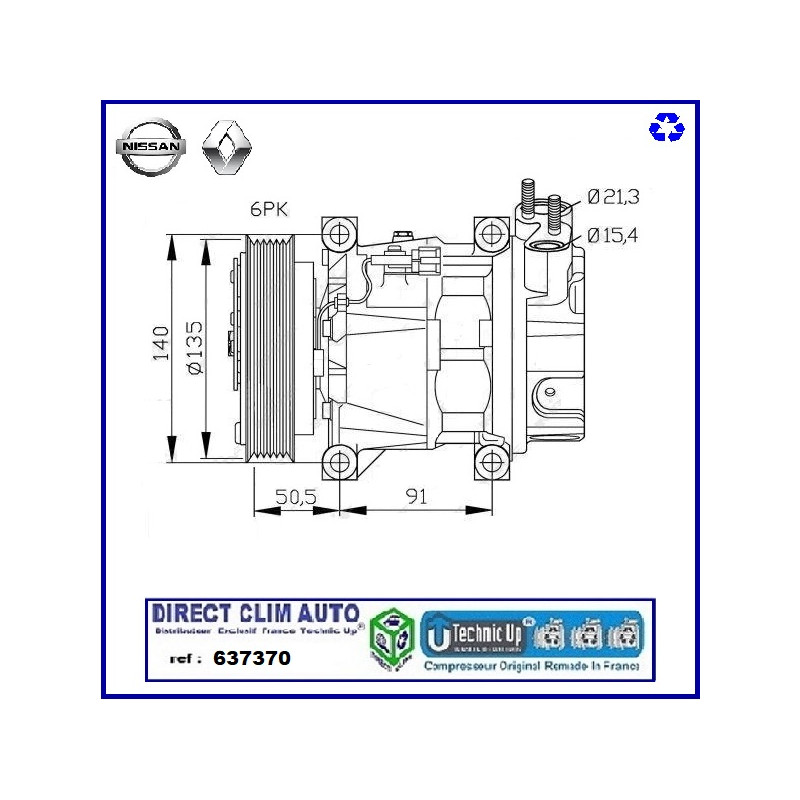 COMPRESSEUR ECHANGE STANDARD MODEL ORIGINAL CONSTRUCTEUR EQUIPMENTIER POUR CIRCUIT DE CLIMATISATION VEHICULE