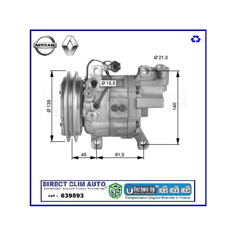COMPRESSEUR ECHANGE STANDARD MODEL ORIGINAL CONSTRUCTEUR EQUIPMENTIER POUR CIRCUIT DE CLIMATISATION VEHICULE
