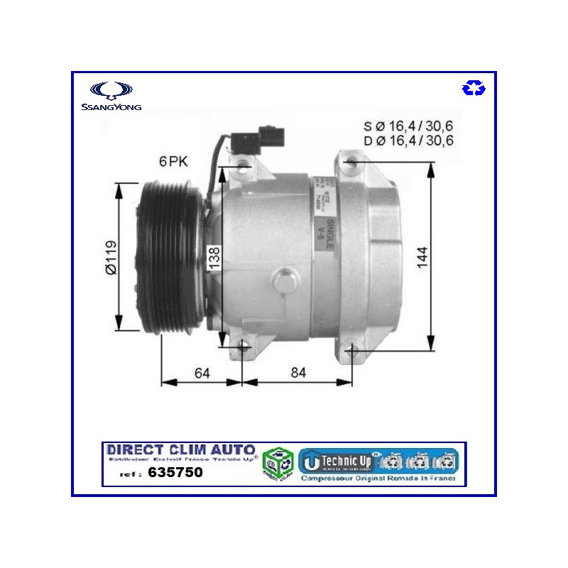 COMPRESSEUR ECHANGE STANDARD MODEL ORIGINAL CONSTRUCTEUR EQUIPMENTIER POUR CIRCUIT DE CLIMATISATION VEHICULE