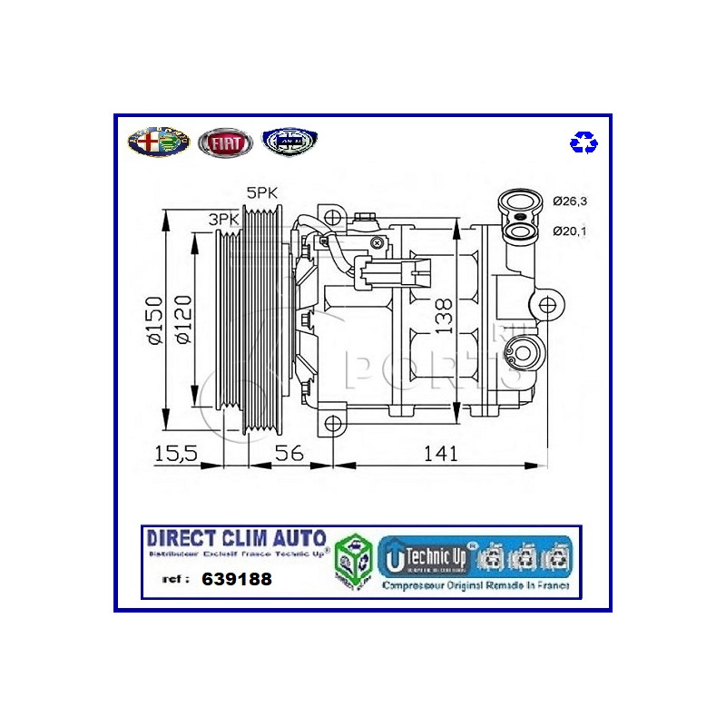 COMPRESSEUR ECHANGE STANDARD MODEL ORIGINAL CONSTRUCTEUR EQUIPMENTIER POUR CIRCUIT DE CLIMATISATION VEHICULE