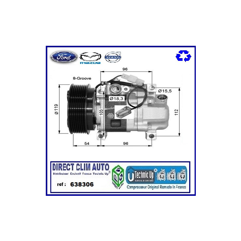 COMPRESSEUR ECHANGE STANDARD MODEL ORIGINAL CONSTRUCTEUR EQUIPMENTIER POUR CIRCUIT DE CLIMATISATION VEHICULE