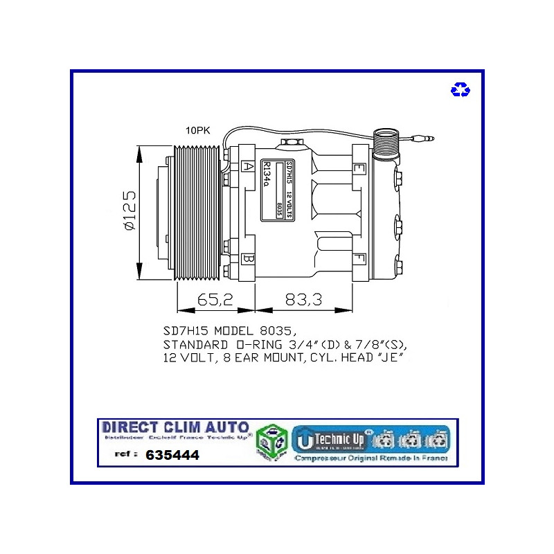COMPRESSEUR ECHANGE STANDARD MODEL ORIGINAL CONSTRUCTEUR EQUIPMENTIER POUR CIRCUIT DE CLIMATISATION ENGIN- MATERIEL