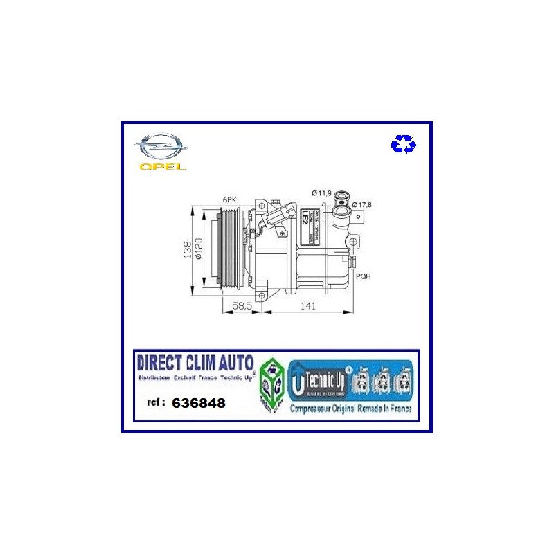 COMPRESSEUR ECHANGE STANDARD MODEL ORIGINAL CONSTRUCTEUR EQUIPMENTIER POUR CIRCUIT DE CLIMATISATION VEHICULE
