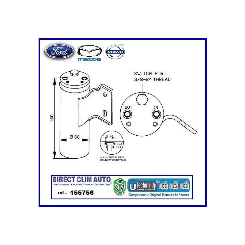 TECHNIC UP 155756 FILTRE DESHYDRATEUR CIRCUIT CLIMATISATION VEHICULE FORD - MAZDA - VOLVO