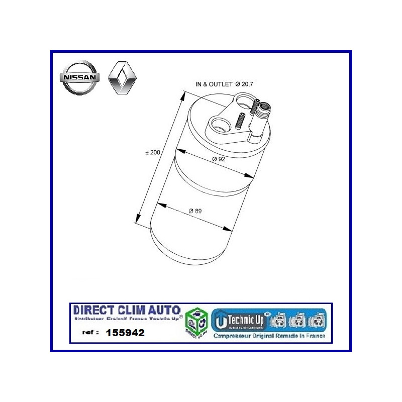 TECHNIC UP 155942 FILTRE DESHYDRATEUR CIRCUIT CLIMATISATION VEHICULE RENAULT - NISSAN