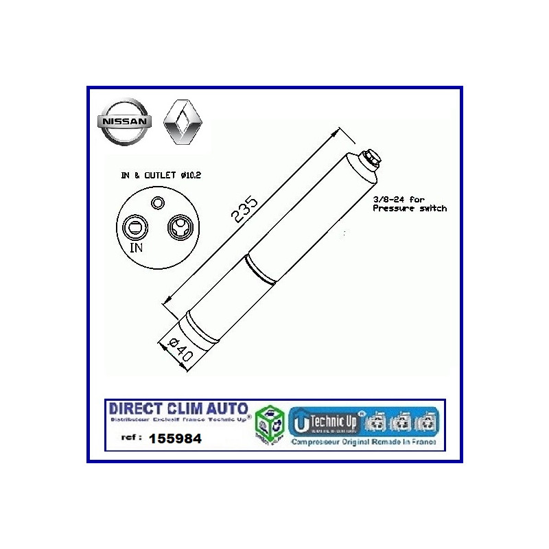 TECHNIC UP 155984 FILTRE DESHYDRATEUR CIRCUIT CLIMATISATION VEHICULE NISSAN - RENAULT