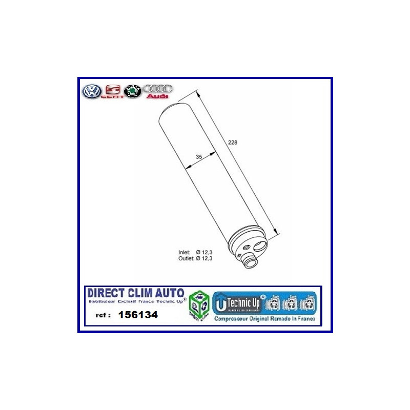 TECHNIC UP 156134 FILTRE DESHYDRATEUR CIRCUIT CLIMATISATION VEHICULE VOLKSWAGEN - VAG