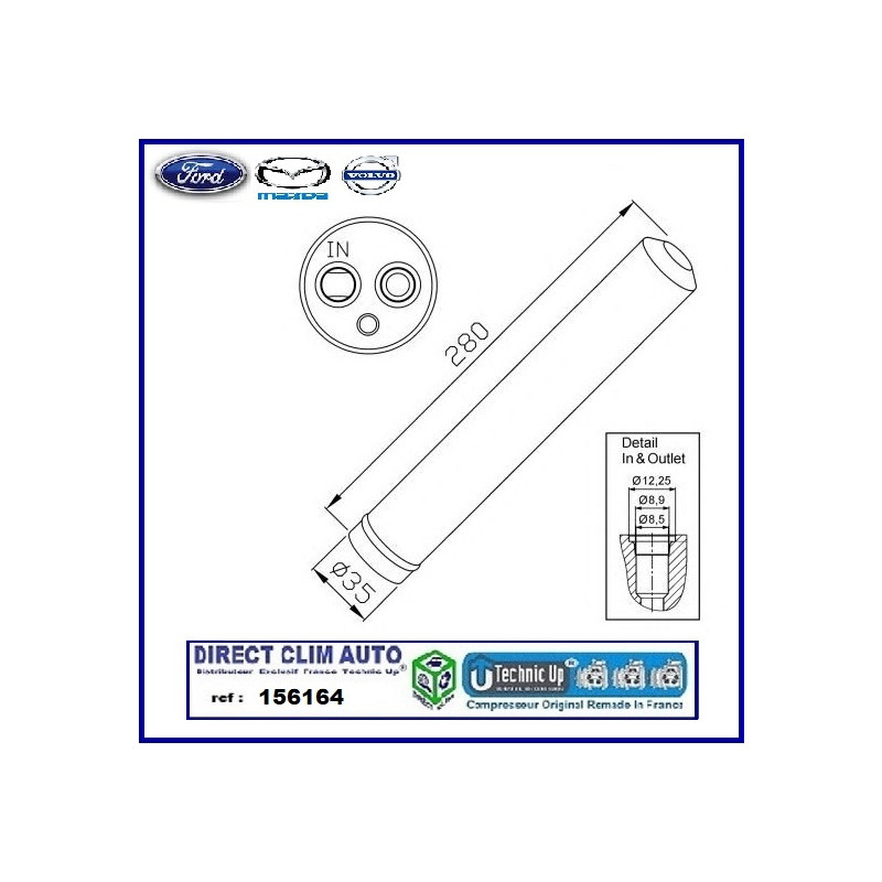 TECHNIC UP 156164 FILTRE DESHYDRATEUR CIRCUIT CLIMATISATION VEHICULE FORD - MAZDA - VOLVO