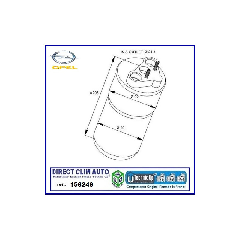 TECHNIC UP 156248 FILTRE DESHYDRATEUR CIRCUIT CLIMATISATION VEHICULE OPEL - VAUXHALL