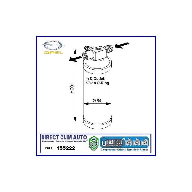 TECHNIC UP 155222 FILTRE DESHYDRATEUR CIRCUIT CLIMATISATION VEHICULE OPEL - VAUXHALL