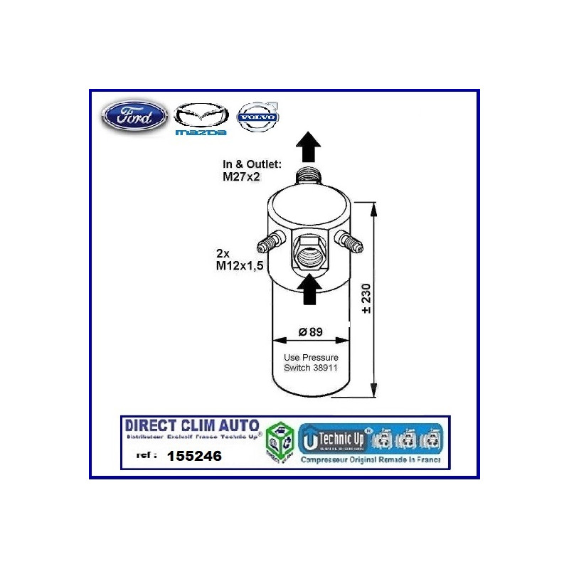 TECHNIC UP 155246 FILTRE DESHYDRATEUR CIRCUIT CLIMATISATION VEHICULE FORD - MAZDA - VOLVO