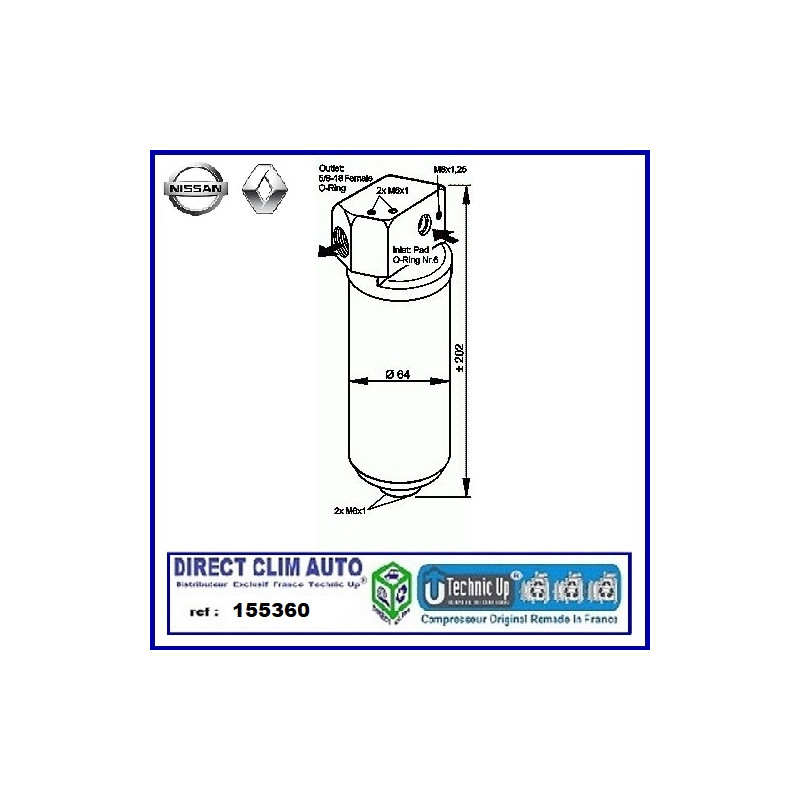 TECHNIC UP 155360 FILTRE DESHYDRATEUR CIRCUIT CLIMATISATION VEHICULE RENAULT - NISSAN