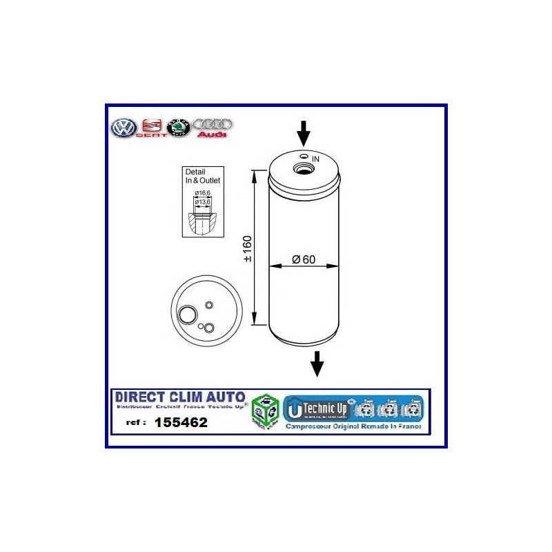 TECHNIC UP 155462 FILTRE DESHYDRATEUR CIRCUIT CLIMATISATION VEHICULE AUDI VAG