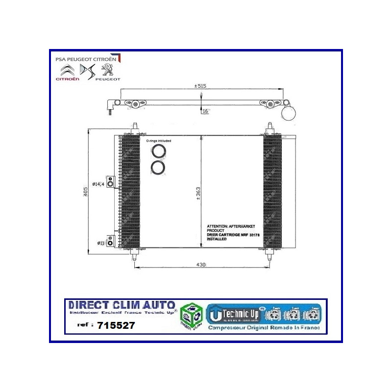 CONDENSEUR TECHNIC UP REF 715527 POUR VEHICULE CITROEN-DS-PEUGEOT