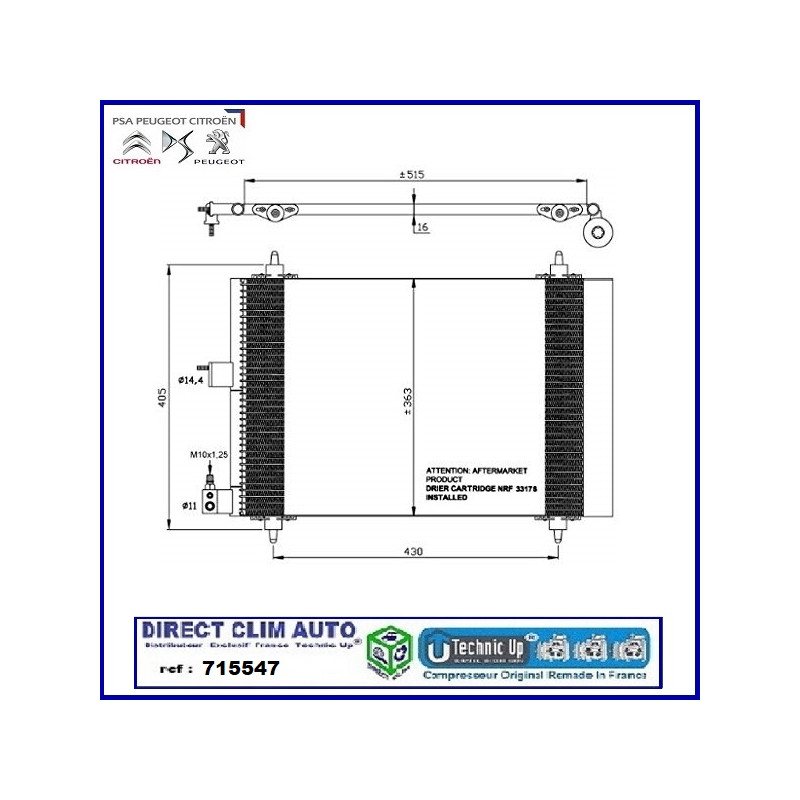 CONDENSEUR TECHNIC UP REF 715547 POUR VEHICULE CITROEN-DS-PEUGEOT