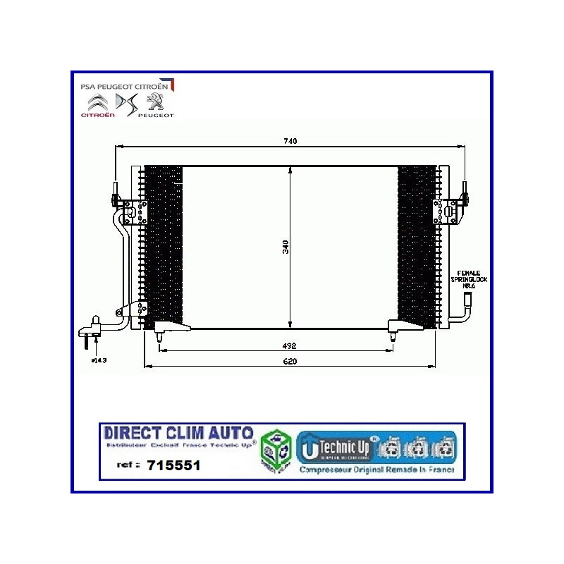 CONDENSEUR TECHNIC UP REF 715551 POUR VEHICULE CITROEN-DS-PEUGEOT