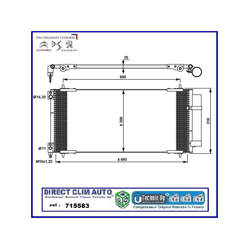 CONDENSEUR TECHNIC UP REF 715583 POUR VEHICULE CITROEN-DS-PEUGEOT