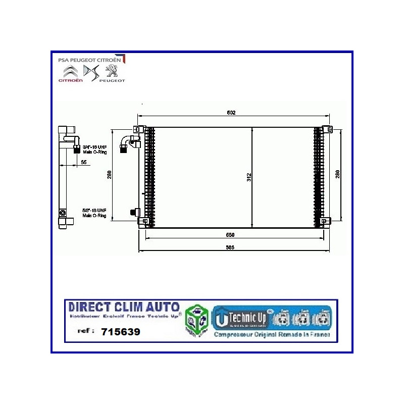 CONDENSEUR TECHNIC UP REF 715639 POUR VEHICULE CITROEN-DS-PEUGEOT
