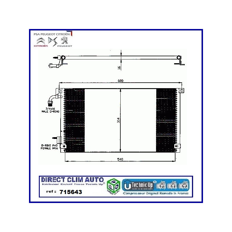 CONDENSEUR TECHNIC UP REF 715643 POUR VEHICULE CITROEN-DS-PEUGEOT