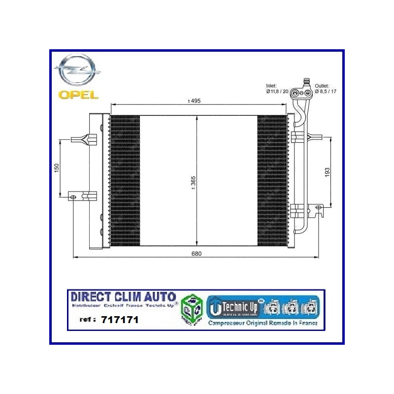 CONDENSEUR TECHNIC UP REF 717171 POUR VEHICULE OPEL