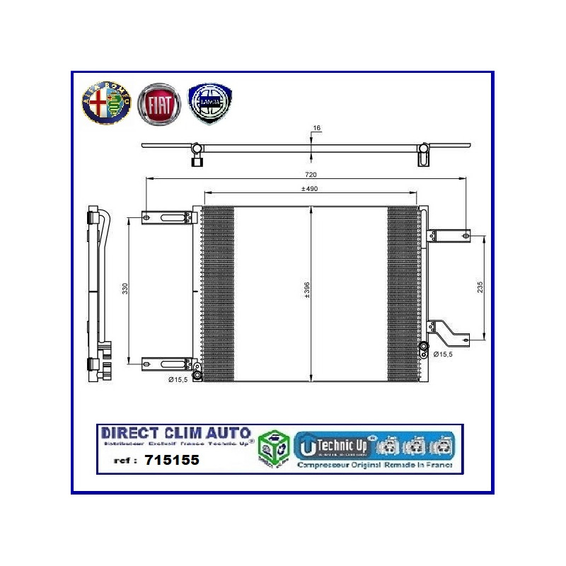 CONDENSEUR TECHNIC UP REF 715155 POUR VEHICULE GROUPE FIAT