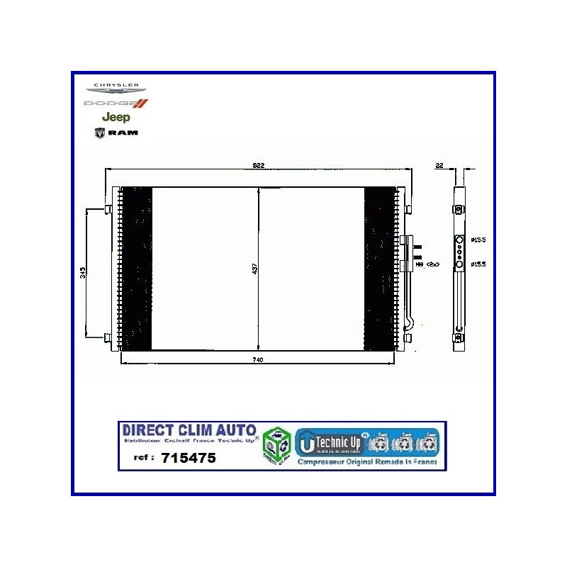 CONDENSEUR TECHNIC UP REF 715475 POUR VEHICULE CHRYSLER - JEEP