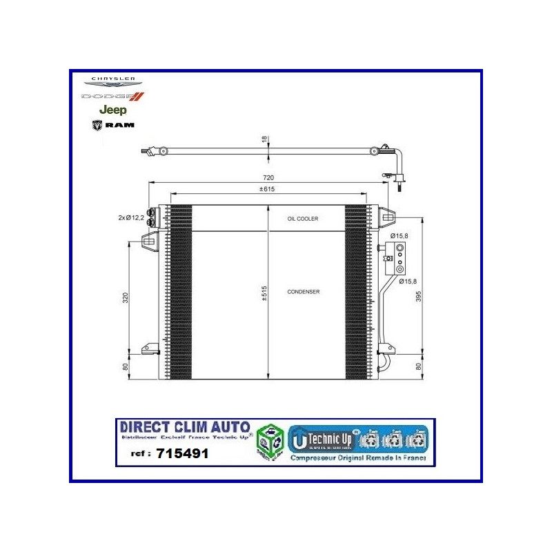 CONDENSEUR TECHNIC UP REF 715491 POUR VEHICULE CHRYSLER - JEEP