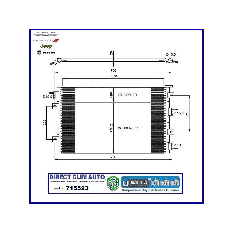 CONDENSEUR TECHNIC UP REF 715523 POUR VEHICULE CHRYSLER - JEEP