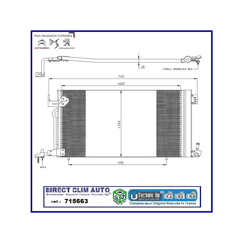 CONDENSEUR TECHNIC UP REF 715663 POUR VEHICULE CITROEN-DS-PEUGEOT
