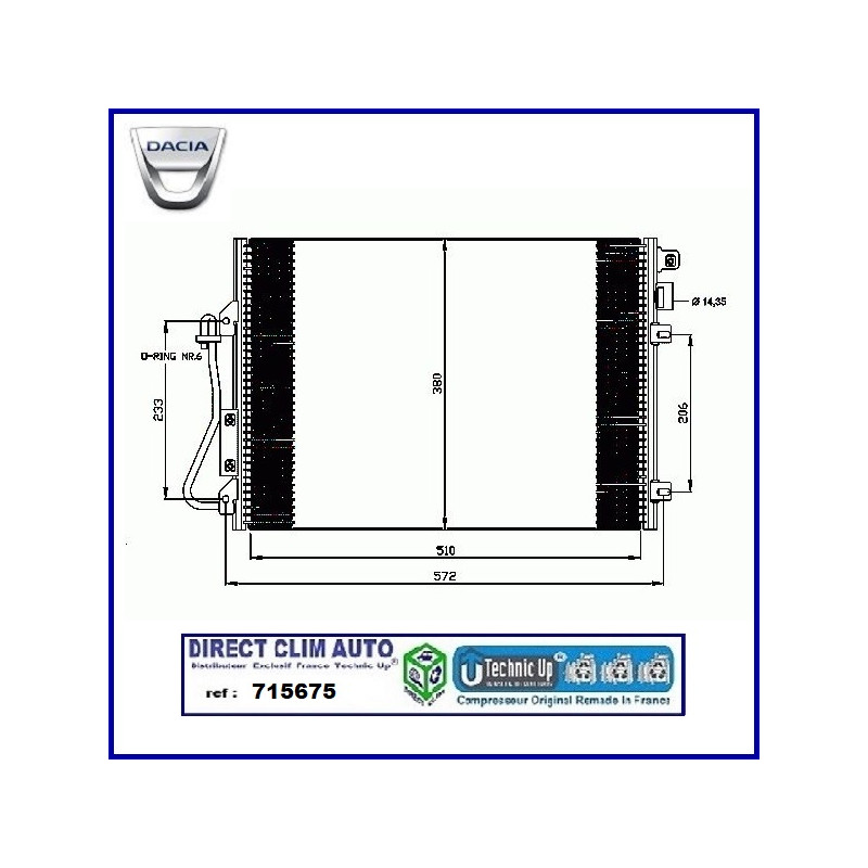 CONDENSEUR TECHNIC UP REF 715675 POUR VEHICULE DACIA
