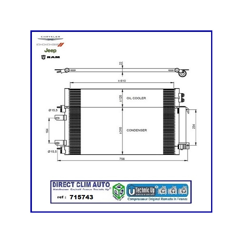 CONDENSEUR TECHNIC UP REF 715743 POUR VEHICULE DODGE