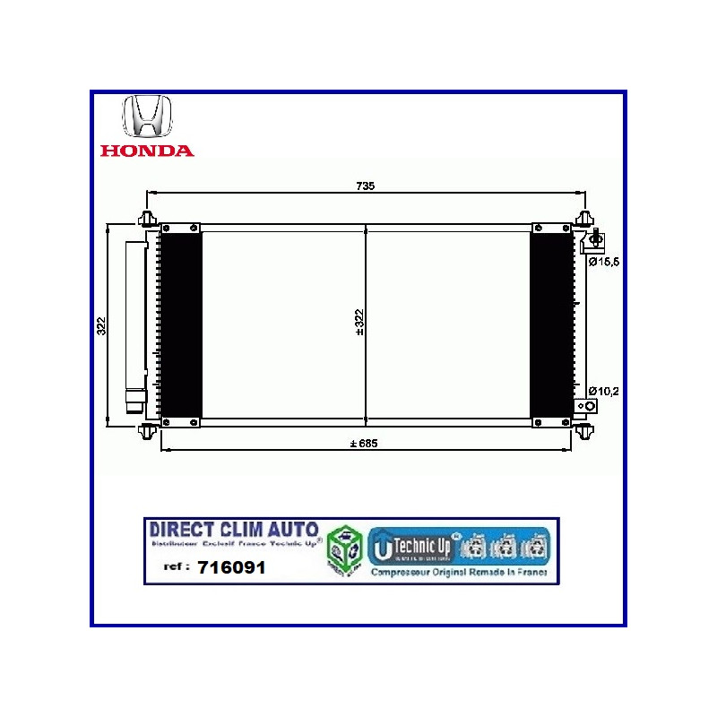 CONDENSEUR TECHNIC UP REF 716091 POUR VEHICULE HONDA