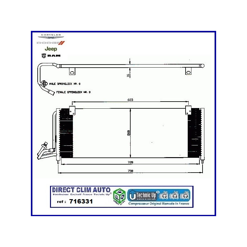 CONDENSEUR TECHNIC UP REF 716331 POUR VEHICULE CHRYSLER - JEEP