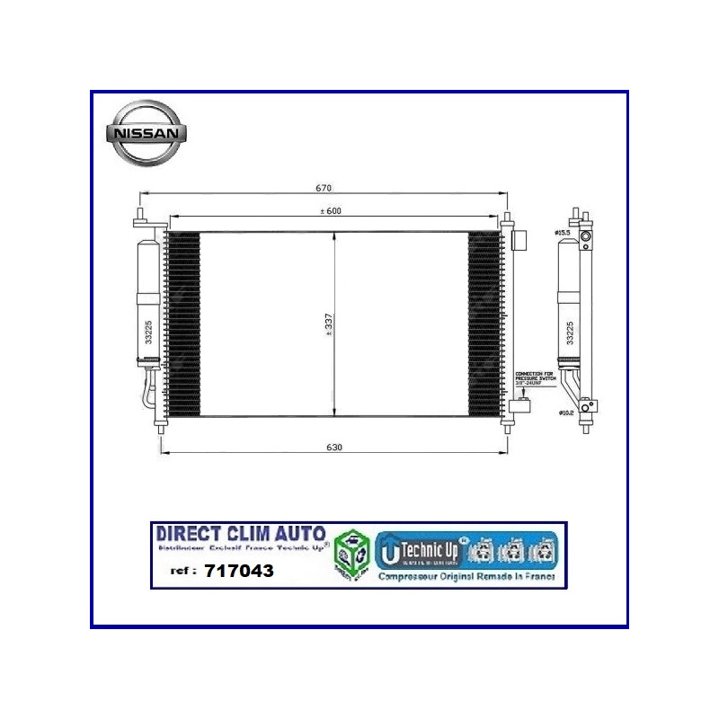 CONDENSEUR TECHNIC UP REF 717043 POUR VEHICULE NISSAN